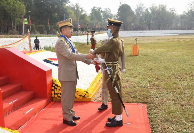 တပ်မတော်(ကြည်း) ဗိုလ်သင်တန်းကျောင်း(ဗထူး)၊ ဗိုလ်လောင်းသင်တန်း အမှတ်စဉ်(၁၂၄) သူရတပ်ခွဲ သင်တန်းဆင်း ဂုဏ်ပြုစစ်ရေးပြအခမ်းအနားကို ယနေ့ နံနက်ပိုင်းတွင် ဗထူးတပ်မြို့ရှိ အဆိုပါဗိုလ် သင်တန်းကျောင်း စစ်ရေးပြကွင်း၌ ကျင်းပ ပြုလုပ်ရာ နိုင်ငံတော်စီမံအုပ်ချုပ်ရေးကောင်စီဥက္ကဋ္ဌ၊ တပ်မတော် ကာကွယ်ရေး ဦးစီး ချုပ် ဗိုလ်ချုပ်မှူးကြီး မဟာသရေစည်သူ မင်းအောင်လှိုင် ကိုယ်စား နိုင်ငံတော် စီမံ အုပ်ချုပ်ရေး ကောင်စီဒုတိယဥက္ကဋ္ဌ ဒုတိယတပ်မတော်ကာကွယ်ရေးဦးစီးချုပ် ကာကွယ်ရေး ဦးစီးချုပ်(ကြည်း) ဒုတိယ ဗိုလ်ချုပ်မှူးကြီး သရေစည်သူ စိုးဝင်း တက်ရောက် မိန့်ခွန်း ပြောကြားသည်။