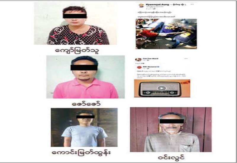 နိုင်ငံတော်၏ အုပ်ချုပ်မှုယန္တရားပျက်ပြားစေရန်ရည်ရွက်ချက်ဖြင့် နိုင်ငံ့ဝန်ထမ်းများအား CDM လှုပ်ရှားမှုတွင် ပါဝင်စေရန်လှုံ့ဆော်ခြင်း၊ CRPH မတရားအသင်းအား ထောက်ခံသည့် အကြောင်းအရာများ၊ မမှန်သတင်းများ အားဖြန့်ဝေခြင်း၊ နိုင်ငံတော်တည်ငြိမ်အေးချမ်းမှုကို ပျက်ပြားစေပြီး ဆူပူအုံကြွမှုဖြစ်ပေါ်စေရန်နှင့် အများပြည်သူ အထိတ်တလန့်ဖြစ်စေရန် အတွက် သွေးထိုးလှုံ့ဆော်မှုများပြုလုပ်ခြင်း၊ Social Pumishment ပြုလုပ်ခြင်းများကို လူမှုကွန်ရက် စာမျက်နှာများတွင် ရည်ရွယ်ချက်ရှိရှိ ဖြင့်ဖော်ပြခြင်းနှင့် ဖြန့်ဝေခြင်းများ ဆောင်ရွက် လျက်ရှိသည့် အောက်ဖော်ပြပါ အနုပညာရှင်အချို့နှင့် အခြားပါဝင်ပတ်သက်သူများအား ရာဇသတ်ကြီးပုဒ်မ ၅၀၅-က ဖြင့် အမှုဖွင့်အရေးယူ ဆောင်ရွက်လျက်ရှိပါသည်။