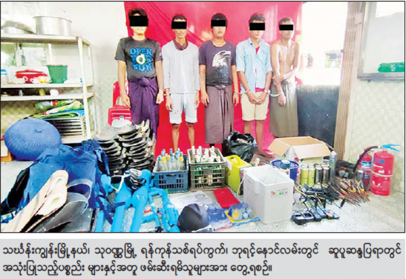 မြို့နယ်အချို့၌ ဆူပူအကြမ်းဖက်မှုလုပ်ရပ်များတွင် အသုံးပြုမည့် လက်နက်ကိရိယာများကို လက်ဝယ် ထားရှိသူများနှင့်အတူဆက်လက်ဖော်ထုတ်ဖမ်းဆီး ရမိခဲ့ကြောင်း သိရသည်။