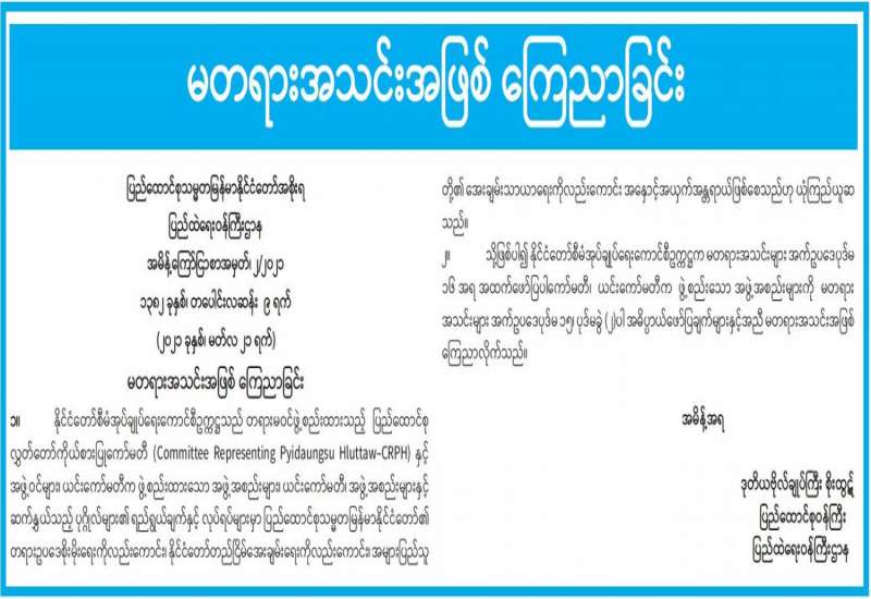 (၂၀၂၁ ခုနှစ်၊ မတ်လ (၂၃)ရက်နေ့၊ နံနက်(၁၀:၃၀)နာရီအချိန် ထုတ်ပြန်ချက်)