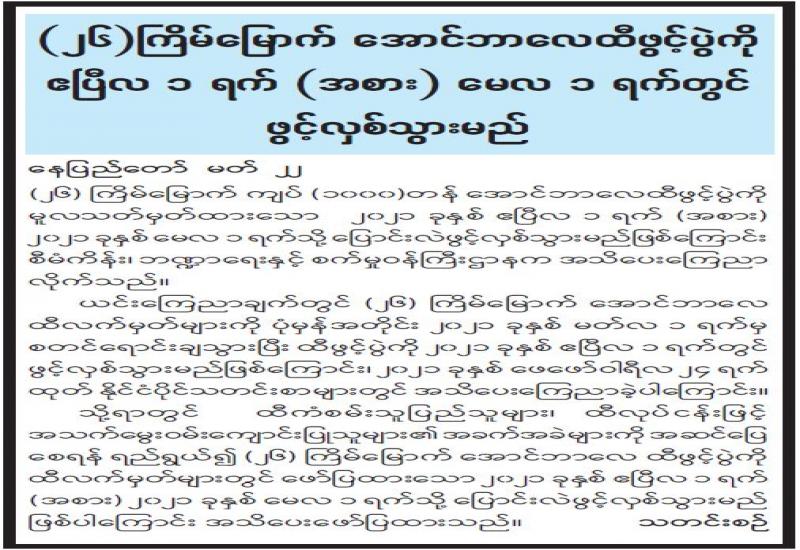 (၂၀၂၁ ခုနှစ်၊ မတ်လ (၂၃)ရက်နေ့ နံနက်(၇:၀၀)နာရီအချိန် ထုတ်ပြန်ချက်)