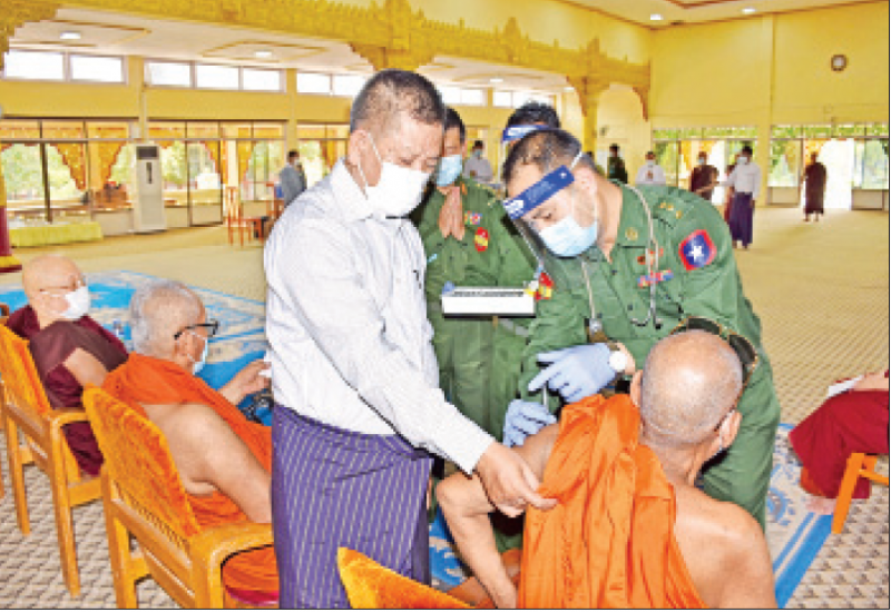 တပ်မတော်အနေဖြင့် တိုင်းစစ်ဌာနချုပ်နယ်မြေ အသီးသီးရှိ ထေရ်ကြီးဝါကြီး ဆရာတော်ကြီးများ အပါအဝင် လူမျိုးမရွေး၊ ဘာသာမရွေး အသက်(၆၅) နှစ်အထက် သက်ကြီးဘိုးဘွားများ၊ ဌာနဆိုင်ရာ ဝန်ထမ်းများနှင့် တိုင်းရင်းသားပြည်သူများကို ကိုဗစ်၁၉ ရောဂါ ကာကွယ်ဆေးထိုးနှံနိုင်ရေးအတွက်ဆေးပစ္စည်းများအား တပ်မတော်လေယာဉ်များဖြင့် သယ်ယူပို့ဆောင်ပေးခြင်းများနှင့် ကာကွယ်ဆေး ထိုးနှံပေးခြင်းများကို ဆောင်ရွက်ပေးလျက် ရှိသည်။