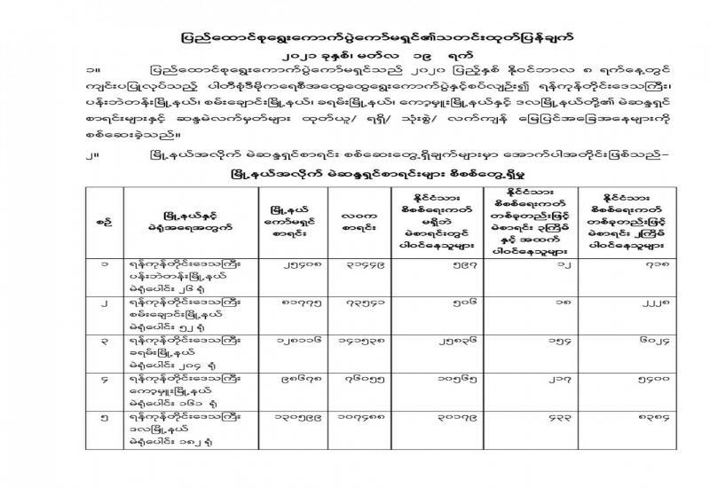 (၂၀၂၁ ခုနှစ်၊ မတ်လ (၂၀)ရက်နေ့ ညနေ (၄:၀၀)နာရီအချိန် ထုတ်ပြန်ချက်)