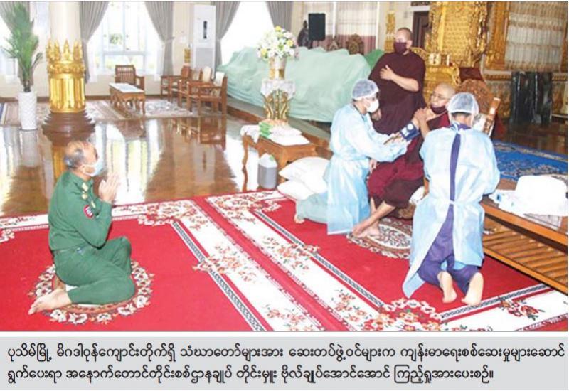 ဘုန်းတော်ကြီးကျောင်းများ၊ သာသနာ့နွယ်ဝင်သီလရှင် ကျောင်းများနှင့် ဘာသာရေး ကျောင်းများတွင် ဆွမ်းအဆင်ပြေ စေရေးအတွက် တပ်မတော်(ကြည်း၊ ရေ၊ လေ)အရာရှိ၊ စစ်သည်၊ အရာထမ်း၊ အမှုထမ်းများက တိုင်းစစ်ဌာနချုပ်များ အလိုက် မြို့နယ်အသီးသီး၌ ဆွမ်းဆန်တော်၊ ဆီ၊ ဆား၊ ပဲ အမယ်လေးမျိုးနှင့်လှူဖွယ်ပစ္စည်းများလှူဒါန်းခြင်းနှင့်နေ့ဆွမ်း ဆက်ကပ်လှူဒါန်းခြင်းများကို ဆောင်ရွက်လျက်ရှိသည်။