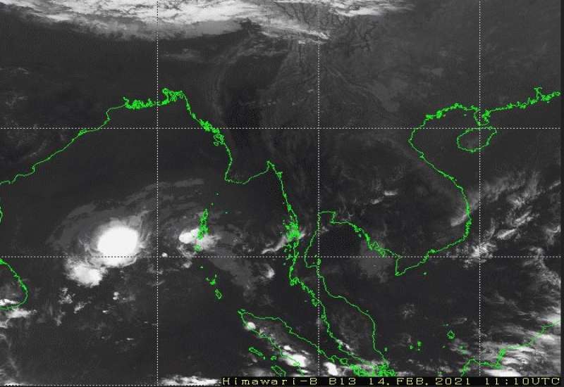 ၂၀၂၁ ခုနှစ်၊ ဖေဖော်ဝါရီလ (၁၅)ရက်နေ့ ည(၇:၀၀)နာရီအချိန် ထုတ်ပြန်ချက် ဘင်္ဂလားပင်လယ်အော်အခြေအနေ။ ကပ္ပလီပင်လယ်ပြင်နှင့် ဘင်္ဂလားပင်လယ်အော်တောင်ပိုင်းတို့တွင် တိမ် အနည်းငယ်မှ တိမ်အသင့်အတင့် ဖြစ်ထွန်းနေပြီး၊ ကျန်ဘင်္ဂလားပင်လယ်အော်တို့တွင် အများအားဖြင့် သာယာ နေပါသည်။