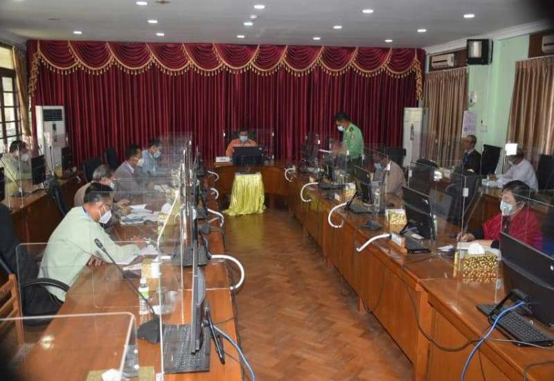 ပဲခူးတိုင်းဒေသကြီးအစိုးရအဖွဲ့ရုံး၊ တော်ဝင်ဟံသာခန်းမ၌ ယမန်နေ့ မွန်းလွဲ ၂ နာရီက ပဲခူးတိုင်းဒေသကြီး ကိုဗစ်-၁၉ ရောဂါ ထိန်းချုပ်ရေးနှင့်အရေးပေါ်တုံ့ပြန်ရေးကော်မတီ လုပ်ငန်းညှိနှိုင်းအစည်းအဝေးအား Online Meeting စနစ်ဖြင့် ကျင်းပပြုလုပ်သည်။