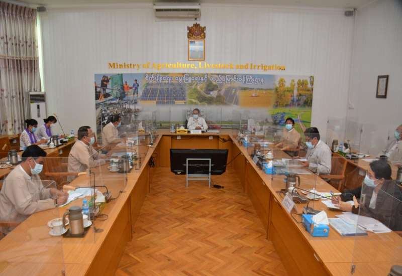 ရာသီဥတုပြောင်းလဲမှုဖြစ်စဉ်ကြောင့် ကြုံတွေ့လာရသည့် ရေရှားပါးလာမှုကို ဖြေရှင်းနိုင်ရန် ရေရရှိရေး ဆောင်ရွက်နေသော လုပ်ငန်းများနှင့် ဆောင်ရွက်သင့်သည့် လုပ်ငန်းစဉ်များဆိုင်ရာ ညှိနှိုင်းအစည်းအဝေးကို ယနေ့မွန်းလွဲပိုင်းက စိုက်ပျိုးရေး၊ မွေးမြူရေးနှင့် ဆည်မြောင်း ဝန်ကြီးဌာန ပြည်ထောင်စုဝန်ကြီးရုံး အစည်းအဝေးခန်းမ၌ ကိုဗစ်-၁၉ တားဆီးကာကွယ်ရေး ဆိုင်ရာ ညွှန်ကြားချက်များနှင့်အညီ ကျင်းပသည်။