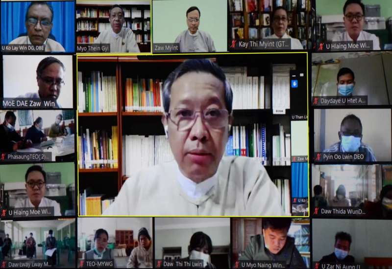 အမျိုးသားပညာရေး မဟာဗျူဟာစီမံကိန်း (၂၀၂၁-၂၀၃၀) (National Education Strategic Plan - NESP) (2021-2030) ရေးဆွဲရေးအတွက် အခြေခံပညာကဏ္ဍနှင့် နည်းပညာ နှင့် သက်မွေးပညာကဏ္ဍများမှ ဆရာ ဆရာမများနှင့် ညှိနှိုင်းအစည်းအဝေးကို ယနေ့ နံနက် ၉ နာရီခွဲက နေပြည်တော်ရှိ၊ ပညာရေးဝန်ကြီးဌာန၌ အွန်လိုင်းစနစ်ဖြင့် ကျင်းပသည်။