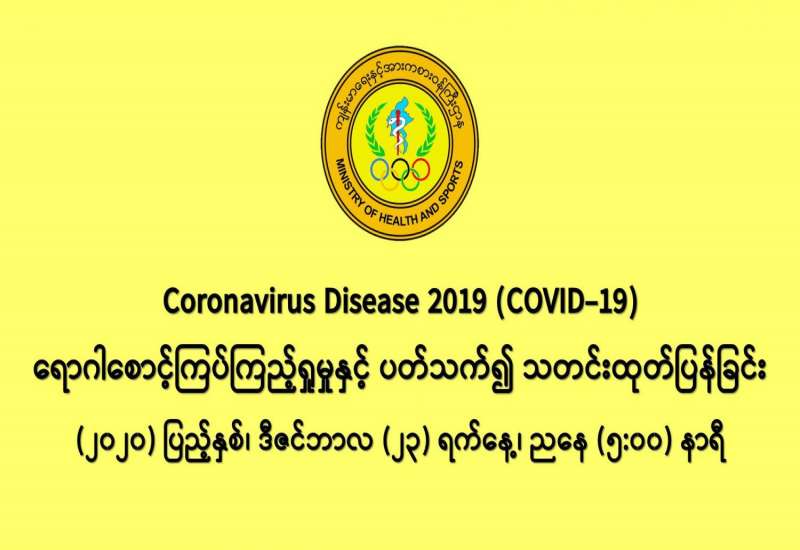 (၂၂-၁၂-၂၀၂၀) ရက်နေ့၊ ည (၈:၀၀) နာရီမှ (၂၃-၁၂-၂၀၂၀) ရက်နေ့၊ ည (၈:၀၀) နာရီ အတွင်း ဓာတ်ခွဲနမူနာ စုစုပေါင်း (၂၃,၀၇၂) ခုအား စစ်ဆေးပြီးစီးခဲ့ရာ COVID-19 ရောဂါ ဓာတ်ခွဲအတည်ပြု လူနာသစ် (၉၂၃) ဦး တွေ့ရှိရပါသည်။