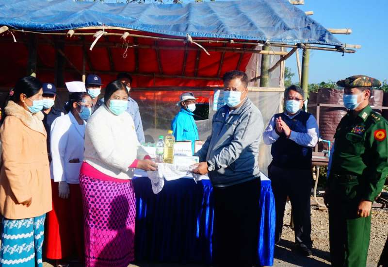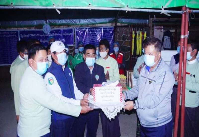 ရှမ်းပြည်နယ်အစိုးရအဖွဲ့ ပြည်နယ်ဝန်ကြီးချုပ် ဒေါက်တာလင်းထွဋ်၊ ပြည်နယ်ဝန်ကြီးများနှင့် တာဝန်ရှိသူများသည် ယမန်နေ့ညနေပိုင်း က ကွတ်ခိုင်မြို့အဝင် ကျန်းမာရေးစစ်ဆေးရေးစခန်းသို့ ထောက်ပံ့ငွေကြေးများ၊ စားသောက်ကုန်များနှင့် ကျန်းမာရေးအထောက်အကူပြု နှာခေါင်းစည်းများ လာရောက်ပေးအပ်ထောက်ပံ့သည်။