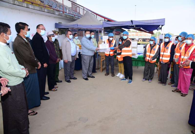 ရှမ်းပြည်နယ်အစိုးရအဖွဲ့၊ ဝန်ကြီးချုပ် ဒေါက်တာလင်းထွဋ် ဦးဆောင်သည့် ဝန်ကြီးအဖွဲ့မှ မူဆယ်မြို့၊ မြို့အဝင်စစ်ဆေးရေးဂိတ်၌ တာဝန် ထမ်းဆောင်ကြသည့် မူဆယ်မြို့ (ကိုဗစ်-၁၉) စစ်ဆေးရေးဂိတ်၌ တာဝန်ထမ်းဆောင်ကြသည့် မူဆယ်မြို့၊ ကိုဗစ်-၁၉ ရောဂါ ကြိုတင် ကာကွယ်ထိန်းချုပ် ကုသရေးကော်မတီအဖွဲ့ ဌာနဆိုင်ရာ၊ ပရဟိတနှင့် အဖွဲ့များအား ယမန်နေ့ ညနေ (၅)နာရီ အချိန်ခန့်က ကျန်းမာရေး အသုံးအဆောင်ပစ္စည်းများနှင့် အာဟာရဖြည့် အစားအစာများကို ပေးအပ်လှူဒါန်းသည်။