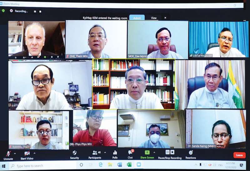 ပညာရေးဝန်ကြီးဌာနက ကြီးမှူးကျင်းပသော ၂၁ ရာစု မြန်မာနိုင်ငံ အဆင့်မြင့်ပညာရေးကဏ္ဍ၏ အခွင့်အလမ်းသစ် များနှင့် စိန်ခေါ်မှုသစ်များ (New Challenges and Opportunities for Higher Education in Myanmar in the 21st Century) ခေါင်းစဉ်ဖြင့် ညှိနှိုင်းအစည်းအဝေးပွဲကို ယမန်နေ့ ညနေ ၅ နာရီခွဲတွင် Online စနစ်ဖြင့် ကျင်းပ သည်။