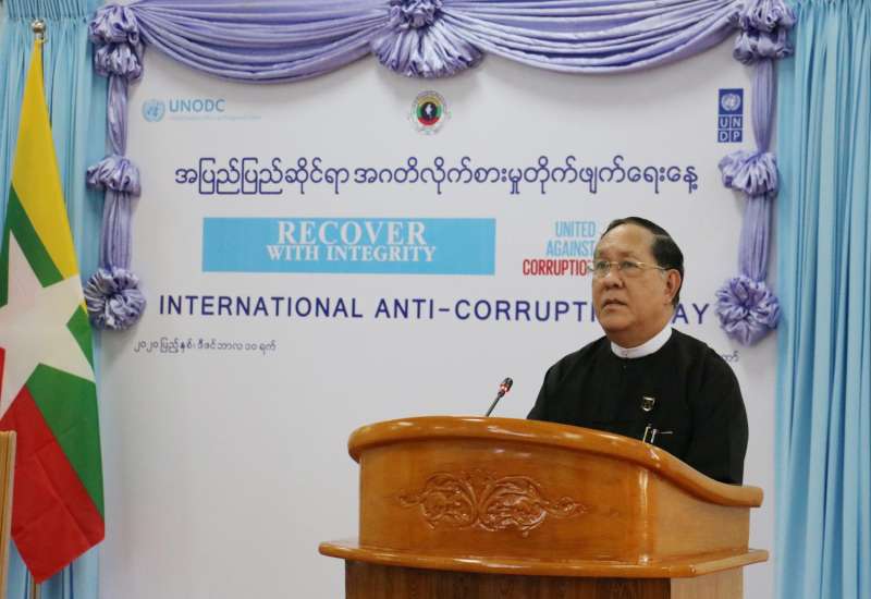 ပြည်ထောင်စုတရားသူကြီးချုပ် ဦးထွန်းထွန်းဦး အပြည်ပြည်ဆိုင်ရာ အဂတိလိုက်စားမှု တိုက်ဖျက်ရေးနေ့ အထိမ်းအမှတ် အခမ်းအနားတွင် ပြောကြားသည့် အမှာစကား