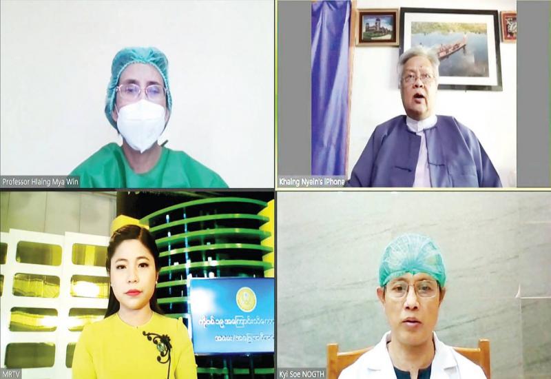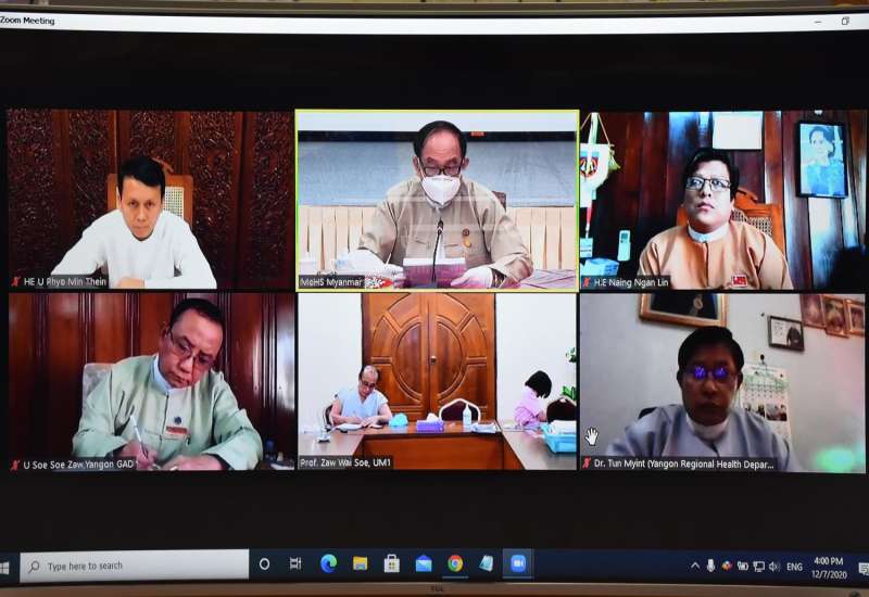 ကျန်းမာရေးနှင့်အားကစားဝန်ကြီးဌာန၊ ပြည်ထောင်စုဝန်ကြီး ဒေါက်တာမြင့်ထွေးသည် ရန်ကုန် တိုင်းဒေသကြီး ဝန်ကြီးချုပ် ဦးဖြိုးမင်းသိန်းနှင့် ရန်ကုန်တိုင်းဒေသကြီး အစိုးရအဖွဲ့ဝင်များကို ယမန်နေ့ ညနေပိုင်းက Videoconferencing စနစ်ဖြင့် ချိတ်ဆက်တွေ့ဆုံပြီး ရန်ကုန် တိုင်းဒေသကြီးတွင် ကိုဗစ်-၁၉ ကာကွယ်ရေးစည်းကမ်းများ တိကျစွာ လိုက်နာဆောင်ရွက်ရေး ကြီးကြပ်ဆောင်ရွက်မည့် အစီအစဉ်များကို ဆွေးနွေးသည်။