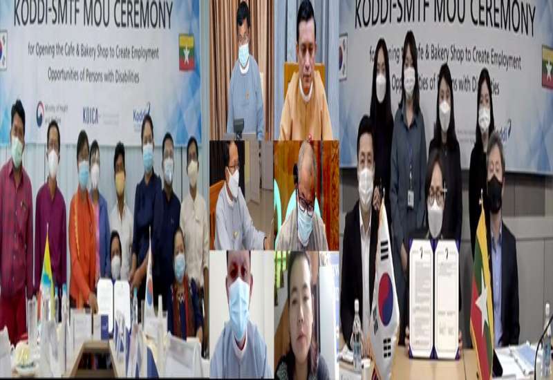 သန်စွမ်းသူများ၏ အလုပ်အကိုင်အခွင့်အလမ်းနှင့် ဝင်ငွေဆုံးရှုံးမှုများကို အထောက်အကူ ပြုစေရန် ရွှေမင်းသားဖောင်ဒေးရှင်း (မြန်မာ)နှင့် Korea Disabled People’s Development Institute (KODI) တို့၏ သဘောတူပူးပေါင်းဆောင်ရွက်ခြင်း နားလည်မှုစာချွန်လွှာလက်မှတ် ရေးထိုးပွဲအခမ်းအနားကို ယနေ့မွန်းလွဲပိုင်းတွင် Video Conferencing စနစ်ဖြင့် ကျင်းပသည်။