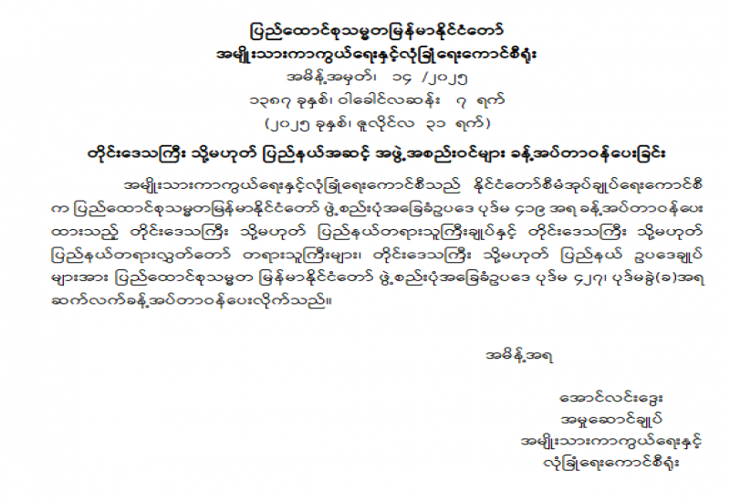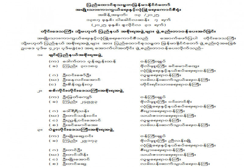 တိုင်းဒေသကြီး သို့မဟုတ် ပြည်နယ်အဆင့် အဖွဲ့အစည်းဝင်များ ခန့်အပ်တာဝန်ပေးခြင်း
