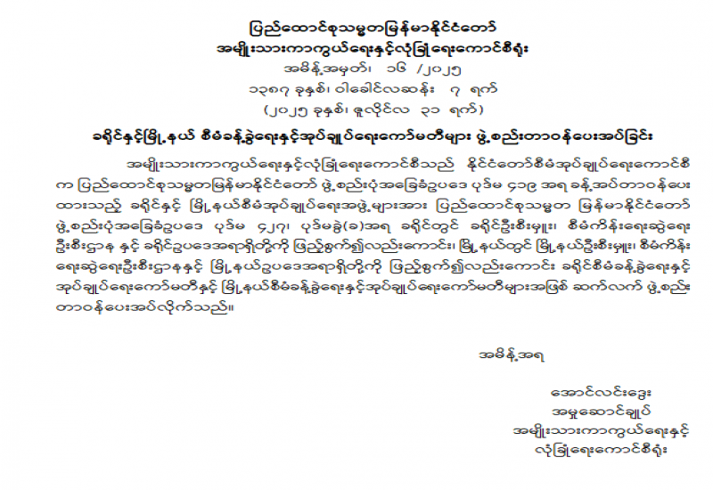 အကြမ်းဖက်အုပ်စုအဖြစ်ကြေညာထားသည့် CRPH ၊ NUG နှင့် ယင်းတို့၏ လက်ဝေခံအဖွဲ့အစည်းများ၊ ယင်းတို့နှင့် ဆက်နွှယ်နေသောအဖွဲ့အစည်းများ၊ လူပုဂ္ဂိုလ်များသည် နိုင်ငံတော်တည်ငြိမ်အေးချမ်းရေးကို ပျက်ပြားစေရန်နှင့် အစိုးရယန္တရားများ ပျက်ပြားစေရန်ရည်ရွယ်လျက် လှုံ့ဆော်ခြင်း၊ ဝါဒဖြန့်ခြင်းများပြုလုပ်ခဲ့မှုအပေါ် ဥပဒေနှင့်အညီ ထိရောက်စွာ အရေးယူသွားမည်ဖြစ်ကြောင်းနှင့် ထိုသို့ လှုံ့ဆော်သူ၊ ဝါဒဖြန့်သူများအား ဆက်လက်ဖော်ထုတ်အရေးယူသွားမည်ဖြစ်ကြောင်း မိဘပြည်သူများသိရှိနိုင်ရေး အသိပေးသတင်းထုတ်ပြန်ပြီးဖြစ်သည်။