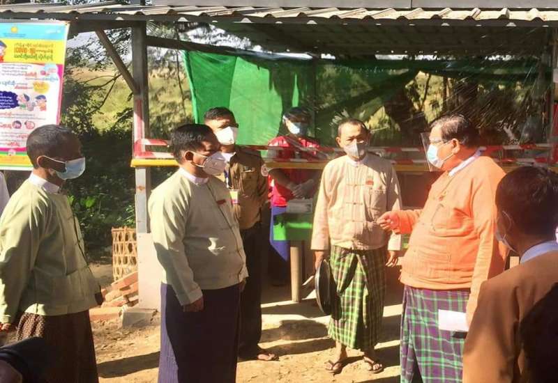 ဧရာဝတီတိုင်းဒေသကြီးအစိုးရအဖွဲ့ ဝန်ကြီးချုပ် ဦးလှမိုးအောင်နှင့်တာဝန်ရှိသူများက ယမန်နေ့ နေ့လယ် ၃ နာရီက မြန်အောင်မြို့အဝင် သပြေလှ စုပေါင်းစစ်ဆေးရေးဂိတ်အား ကြည့်ရှုစစ်ဆေး၍ ထောက်ပံ့ငွေများ ပေးအပ်ခဲ့သည်။