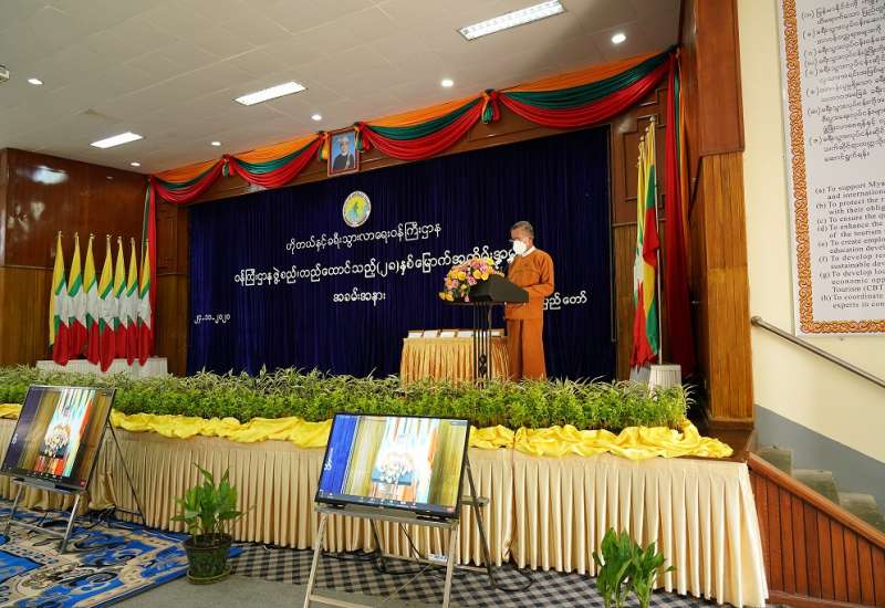 ဟိုတယ်နှင့်ခရီးသွားလာရေးဝန်ကြီးဌာန ဖွဲ့စည်းတည်ထောင်သည့် (၂၈) နှစ်ပြည့် အထိမ်းအမှတ် Virtual အခမ်းအနားကို ယနေ့နံနက်ပိုင်းတွင် နေပြည်တော်ရှိ အဆိုပါဝန်ကြီးဌာန ကျောက်စိမ်း ခန်းမ၌ ဗီဒီယိုကွန်ဖရင့်စနစ်ဖြင့် ကျင်းပသည်။