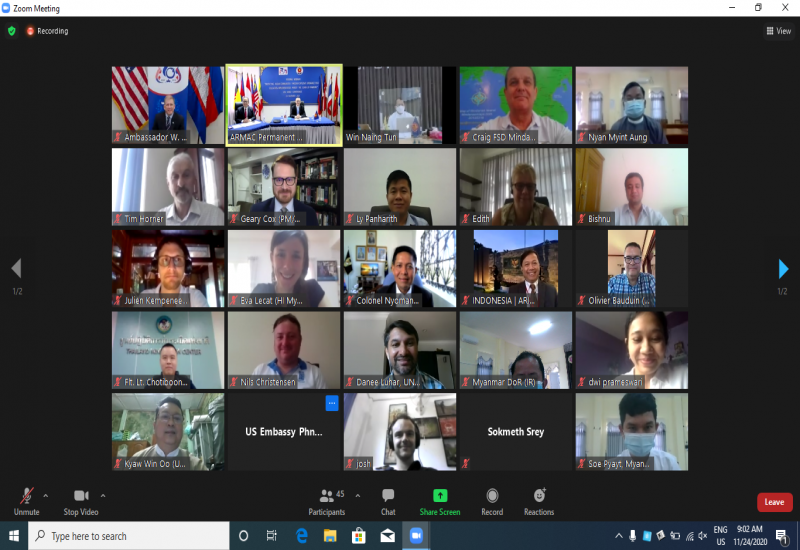 ကမ္ဘောဒီးယားနိုင်ငံရှိ အာဆီယံဒေသတွင်း မိုင်းရှင်းလင်းရေး ဗဟိုဌာန (ARMAC) တွင် ကိုဗစ်-၁၉ ကာလ အတွင်း ပေါက်ကွဲစေတတ်သော ပစ္စည်းများအန္တရာယ် အသိပညာပေးမှု (Explosive Ordnance Risk Education) အကောင်အထည်ဖော်ခြင်းဖြင့် အာဆီယံ လူ့အသိုက်အဝန်းကို အကာအကွယ်ပြုခြင်းဆိုင်ရာ Regional Webinar အစည်းအဝေးကို ယနေ့နံနက်ပိုင်းတွင် ကျင်းပသည်။