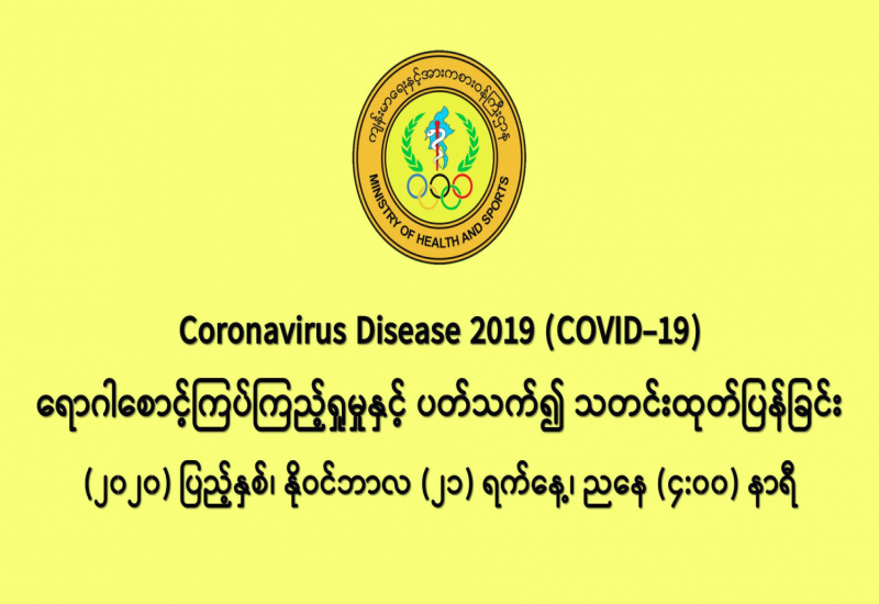 COVID-19 ရောဂါစောင့်ကြပ်ကြည့်ရှုမှုနှင့်ပတ်သက်၍ သတင်းထုတ်ပြန်ခြင်း (၂၁-၁၁-၂၀၂၀) ရက်နေ့၊ ည (၈:၀၀)နာရီ