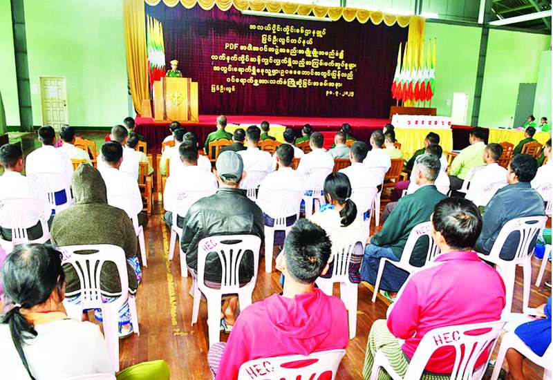 PDF အမည်ခံအကြမ်းဖက်သမားများသည် နိုင်ငံတော်တည်ငြိမ်အေးချမ်းရေးနှင့် အစိုးရအုပ်ချုပ်မှုယန္တရားများ ပျက်ပြားစေရန်ရည်ရွယ်၍ တိုင်းဒေသကြီးနှင့် ပြည်နယ်အချို့ရှိ မြို့၊ ရွာများအတွင်း ဒေသခံပြည်သူများအသွင်ဖြင့် စိမ့်ဝင်ဝင်ရောက်လာကာ ဌာနဆိုင်ရာ အဆောက်အအုံများ၊ ပြည်သူလူထု၏ တိုက်တာအိုးအိမ်များကို မိုင်းထောင်ဖောက်ခွဲခြင်း၊ Drop Bomb ချတိုက်ခိုက်ခြင်း၊ အများပြည်သူသွားလာ အသုံးပြုလျက်ရှိသည့် လမ်း၊ တံတားများအား မိုင်းထောင်ဖောက်ခွဲခြင်း စသည့် အဖျက်အမှောင့်လုပ်ငန်းများကို နည်းလမ်းမျိုးစုံဖြင့် လုပ်ဆောင်လျက်ရှိသည်။