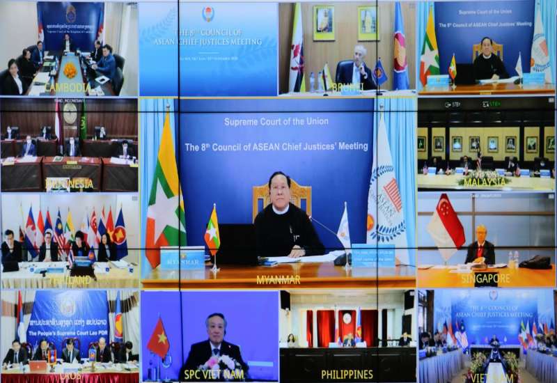 ပြည်ထောင်စုတရားသူကြီးချုပ် ဦးထွန်းထွန်းဦးသည် ယနေ့နံနက်ပိုင်းတွင် ဗီဒီယိုကွန်ဖရင့်စနစ်ဖြင့် ကျင်းပသည့် (၈) ကြိမ်မြောက် အာဆီယံတရားသူကြီးချုပ်များ ကောင်စီ အစည်းအဝေး (The 8th Meeting of the Council of ASEAN Chief Justices)" သို့ နေပြည်တော်ရှိ ပြည်ထောင်စု တရားလွှတ်တော်ချုပ်မှ ပါဝင်တက်ရောက်သည်။