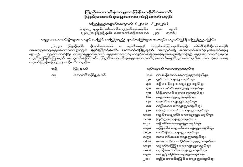 ​ရွေးကောက်ပွဲများ ကျင်းပခြင်းမပြုမည့် နယ်မြေများစာရင်း ထုတ်ပြန်ကြေညာခြင်း
