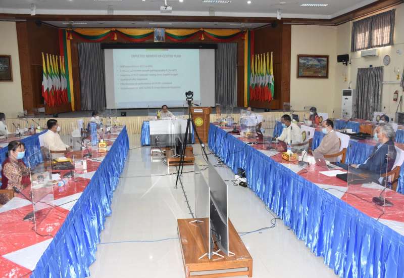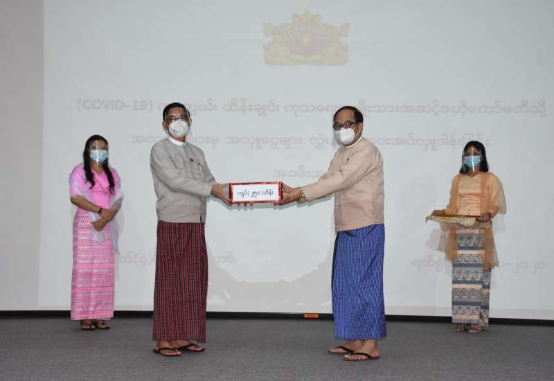 Coronavirus Disease 2019 (COVID-19) ကာကွယ်၊ ထိန်းချုပ်၊ ကုသရေး အမျိုးသားအဆင့် ဗဟိုကော်မတီသို့ အလှူငွေပေးအပ်ပွဲ အခမ်းအနားကို ယနေ့ မွန်းလွဲပိုင်းတွင် ကျန်းမာရေးနှင့် အားကစားဝန်ကြီးဌာန၌ ကျင်းပရာ Coronavirus Disease 2019 (COVID-19) ကာ ကွယ်၊ ထိန်းချုပ်၊ ကုသရေး အမျိုးသားအဆင့် ဗဟိုကော်မတီထံအတွင်းရေးမှူး (၂) ပြည်ထောင်စု ဝန်ကြီး ဒေါက်တာမြင့်ထွေးက လက်ခံသည်။