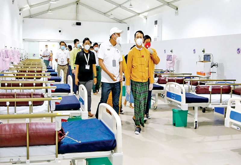 ရန်ကုန်တိုင်းဒေသကြီး ဝန်ကြီးချုပ် ဦးဖြိုးမင်းသိန်းသည် ကိုဗစ်-၁၉ ရောဂါကုသရေးဌာန ဧရာဝတီစင်တာ ခုတင် ၁၀၀၀ တွင် အသစ်ဆောက် လုပ်ပြီးစီးသော ခုတင် ၅၀ ဆံ့ ICU/HDU တိုးချဲ့ဆောင်သို့ ယနေ့နံနက် ပိုင်းက လာရောက်ကြည့်ရှုအားပေး သည်။