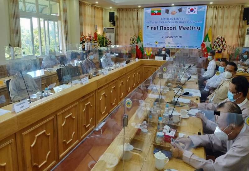မြန်မာနိုင်ငံ၏ လမ်းပန်းဆက်သွယ်မှုနှင့် ပို့ဆောင်မှုကဏ္ဍ ဖွံ့ဖြိုးတိုးတက်စေရေး အတွက် ဆောက်လုပ်ရေး ဝန်ကြီးဌာန၊ လမ်းဦးစီးဌာနနှင့် KOICA Myanmar Office တို့ အကြား ပူးပေါင်းဆောင်ရွက်သည့် Feasibility Study on the Central Backbone Expressway in Myanmar( Yangon – Mandalay Expressway and Yangon - Ngayokekaung Expressway ) ၏ Final Report Meeting ကို ယနေ့ နံနက် ၉ နာရီခွဲတွင် လမ်းဦးစီးဌာန အစည်းအဝေး ခန်းမဆောင်မှ Video Conferencing စနစ်ဖြင့် ကျင်းပသည်။