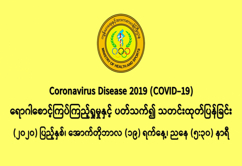 COVID-19 ရောဂါစောင့်ကြပ်ကြည့်ရှုမှုနှင့်ပတ်သက်၍ သတင်းထုတ်ပြန်ခြင်း (၁၉-၁၀-၂၀၂၀) ရက်နေ့၊ ည (၈:၀၀)နာရီ