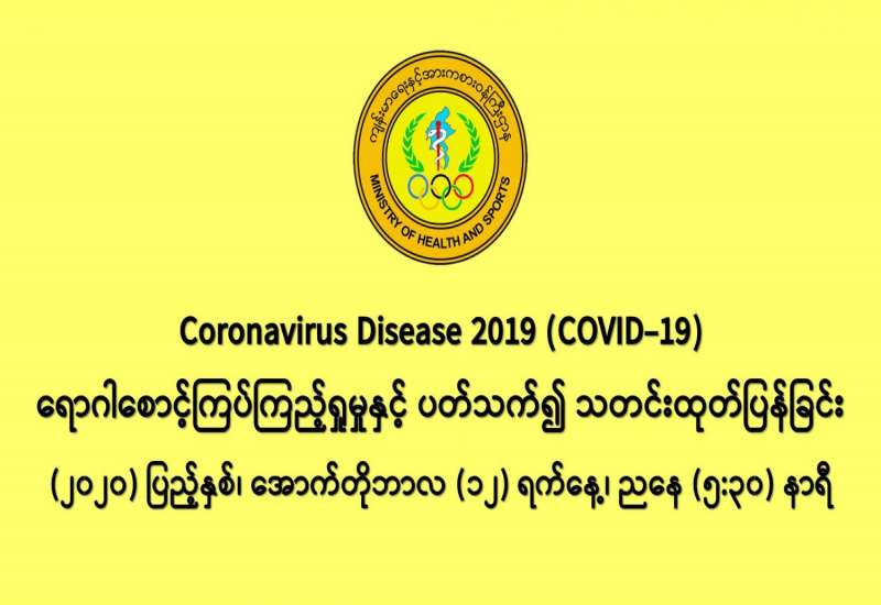 COVID-19 ရောဂါစောင့်ကြပ်ကြည့်ရှုမှုနှင့်ပတ်သက်၍ သတင်းထုတ်ပြန်ခြင်း (၁၁-၁၀-၂၀၂၀) ရက်နေ့၊ ည (၈:၀၀)နာရီ