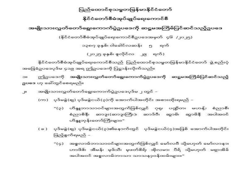 ရန်ကုန်မြို့နှင့် မန္တလေးမြို့အတွက် ရည်ညွှန်းလက်ကားဈေးနှုန်းများနှင့် ပြည်ထောင်စုနယ်မြေ နေပြည်တော်၊ တိုင်းဒေသကြီး/ပြည်နယ် မြို့တော်များအတွက် ရည်ညွှန်းလက်လီဈေးနှုန်းများ