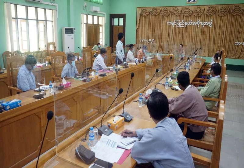 ကရင်ပြည်နယ်အစိုးရအဖွဲ့၊ ပြည်နယ်ဝန်ကြီးချုပ် ဒေါ်နန်းခင်ထွေးမြင့်သည် ကိုဗစ်-၁၉ ကာလ ဆန်နှင့်စားသောက်ကုန် ဈေးနှုန်းများတည်ငြိမ်မှုရှိစေရေးအတွက် ကရင်ပြည်နယ်ကုန်သည်များနှင့် စက်မှုလက်မှုလုပ်ငန်းရှင်များအသင်းမှ တာဝန် ရှိသူများနှင့် ယမန်နေ့ မွန်းလွှဲ ၂ နာရီခန့်က ကရင်ပြည်နယ်အစိုးရအဖွဲ့ရုံး အစည်းအဝေးခန်းမ၌ တွေ့ဆုံ ဆွေးနွေးခဲ့ကြသည်။