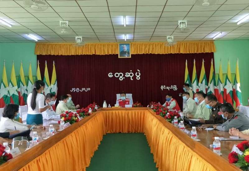 ရှမ်းပြည်နယ်ဝန်ကြီးချုပ် ဒေါက်တာ လင်းထွဋ်နှင့် ရှမ်းပြည်နယ်အစိုးရအဖွဲ့ ဗမာတိုင်း ရင်းသားရေးရာဝန်ကြီး ဒေါက်တာ အောင်သန်းမောင်တို့ ဦးဆောင်သောအဖွဲ့သည် ယနေ့ နံနက် (၁၀)နာရီအချိန် က မိုင်းရယ်မြို့၊ ရပ်ကွက်(၁)ရှိ မြို့နယ်အထွေထွေအုပ်ချုပ်ရေးဦးစီးဌာနရုံးသို့ ရောက်ရှိခဲ့ပြီး မြို့နယ်အုပ်ချုပ်ရေးမှူး ဦးသန်းလွင်နှင့် မြို့နယ်ရွေးကောက်ပွဲကော်မရှင်အဖွဲ့ခွဲ ဥက္ကဋ္ဌ ဦးသိန်းဝင်းနှင့်အဖွဲ့ဝင်များ၊ ကိုဗစ်-၁၉ ရောဂါ ကာကွယ်ထိန်းချုပ်ကုသရေး မြို့နယ်အဆင့် လုပ်ငန်းကော်မတီဝင်များနှင့် တွေ့ဆုံပါသည်။