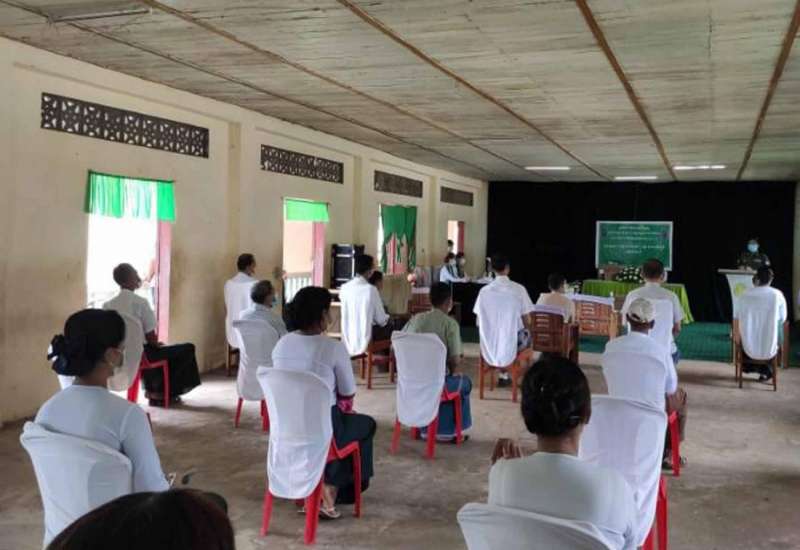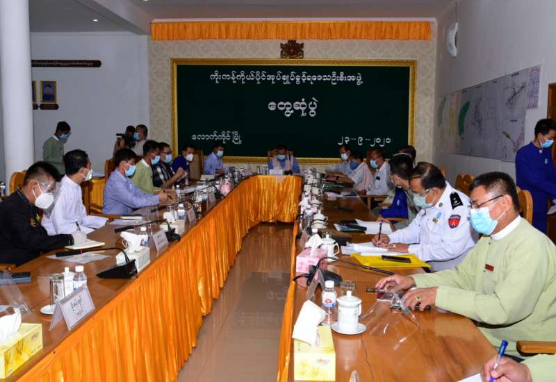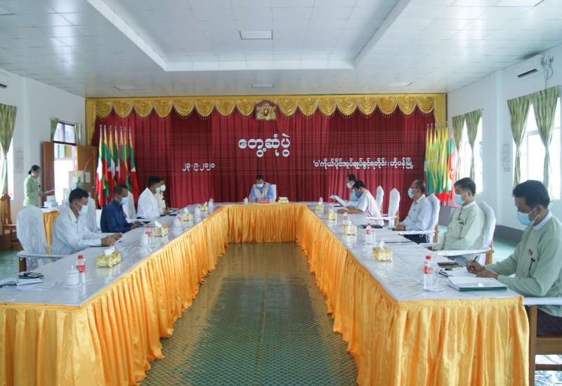 ရှမ်းပြည်နယ်အစိုးရအဖွဲ့ ပြည်နယ်ဝန်ကြီးချုပ် ဒေါက်တာလင်းထွဋ်သည် ရှမ်းပြည်နယ်(မြောက်ပိုင်း) `ဝ´ကိုယ်ပိုင်အုပ်ချုပ်ခွင့်ရဒေသ မြို့နယ် COVID-19ကော်မတီ၊ မြို့နယ်ရွေးကောက်ပွဲကော်မရှင်အဖွဲ့ခွဲတို့နှင့် ယနေ့နံနက် (၁၀)နာရီခွဲက `ဝ´ကိုယ်ပိုင်အုပ်ချုပ်ခွင့်ရဒေသ ဦးစီးရုံးခန်းမ၌ တွေ့ဆုံကြောင်း သိရသည်။