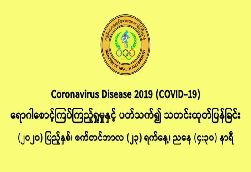 COVID-19 ရောဂါစောင့်ကြပ်ကြည့်ရှုမှုနှင့်ပတ်သက်၍ သတင်းထုတ်ပြန်ခြင်း (၂၂-၉-၂၀၂၀) ရက်နေ့၊ ည (၈:၀၀) နာရီ