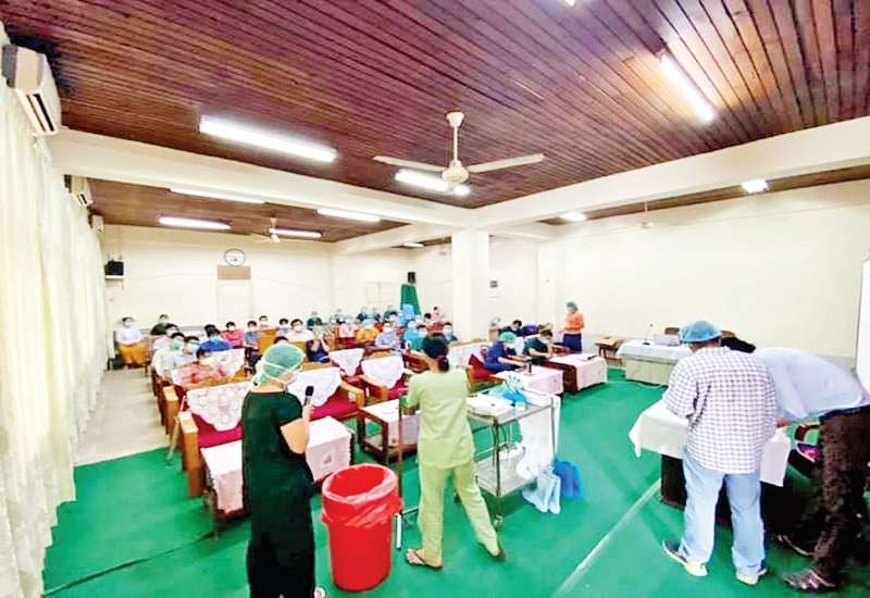 အင်းစိန်ပြည်သူ့ဆေးရုံကြီး၌ ဆေးပညာ ဌာနမှ ပါမောက္ခ ဒေါက်တာဒေါ်မာမာကြည် ဦးဆောင်မှုဖြင့် ကိုဗစ်-၁၉ သံသယလူနာများကို နှာခေါင်း၊ အာခေါင်တို့ဖတ်ယူခြင်း သင်တန်းကို ယနေ့ နံနက်ပိုင်းတွင် ရန်ကုန် တိုင်းဒေသကြီး ဖျားနာကုအခမဲ့ဆေးခန်းများ (Fever Clinics)မှ တာဝန်ခံဆရာဝန်များနှင့် စေတနာ့ ဝန်ထမ်း ဆရာဝန်များအား သင်တန်းပို့ချပေးခဲ့ကြောင်း သိရသည်။