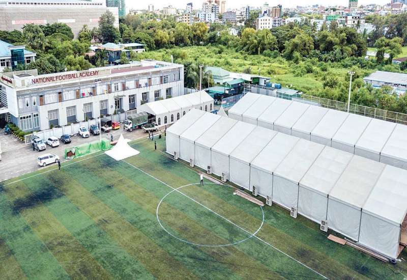 ကိုဗစ်-၁၉ ရောဂါ ကာကွယ်ကုသရေး လုပ်ငန်းများတွင် ပါဝင်ကူညီလှူဒါန်းပေးလျက်ရှိသည့် ဧရာဝတီ ဖောင်ဒေးရှင်း သည် ကိုဗစ်-၁၉ ရောဂါ ကုသရေးဌာန (သုဝဏ္ဏ)ကို အမျိုးသားဘောလုံး အကယ်ဒမီ (ရန်ကုန်) မြက်ခင်းတု လေ့ကျင့်ရေးကွင်း၌ တည်ဆောက်လျက်ရှိသည်။