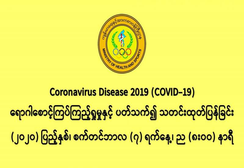 ၁။ (၇-၉ -၂၀၂၀) ရက်နေ့အတွက် COVID-19 ရောဂါ ဓာတ်ခွဲစစ်ဆေးရာတွင် - - အမျိုးသားကျန်းမာရေးဓာတ်ခွဲမှုဆိုင်ရာဌာန (ရန်ကုန်) (NHL) မှ ထပ်မံစစ်ဆေးပြီးစီးခဲ့သော ဓာတ်ခွဲနမူနာ (၁၂၆,၉)ခု၊ - ပြည်သူ့ဆေးရုံကြီး၊ မော်လမြိုင်မြို့မှ ထပ်မံစစ်ဆေးပြီးစီးခဲ့သော ဓာတ်ခွဲနမူနာ (၇၃) ခု၊