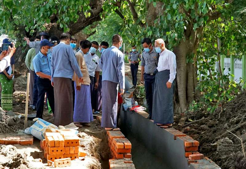 ကချင်ပြည်နယ်အတွင်း သြဂုတ် ၃၁ ရက်နေ့က မိုးသည်းထန်စွာရွာသွန်းမှုကြောင့် မြစ်ကြီးနား မြို့ပေါ်ရပ်ကွက်များအတွင်း ရေဝပ်တင်ကျန်နေမှု အခြေအနေများနှင့် ပတ်သက်ပြီး ကချင်ပြည်နယ် ဝန်ကြီးချုပ်ဒေါက်တာခက်အောင်သည် ပြည်နယ်ဝန်ကြီးများ၊ ဌာနဆိုင်ရာတာဝန်ရှိသူများနှင့်အတူ ယနေ့နံနက်ပိုင်းတွင် ရေဝပ်တင်ကျန်သည့် နေရာများ၊ ရေနုတ်မြောင်းများနှင့် ရေဆင်းစနစ်များ ပြုပြင်ဆောင်ရွက်ပေးနိုင်ရေး ကွင်းဆင်းစစ်ဆေးခဲ့ကြသည်။
