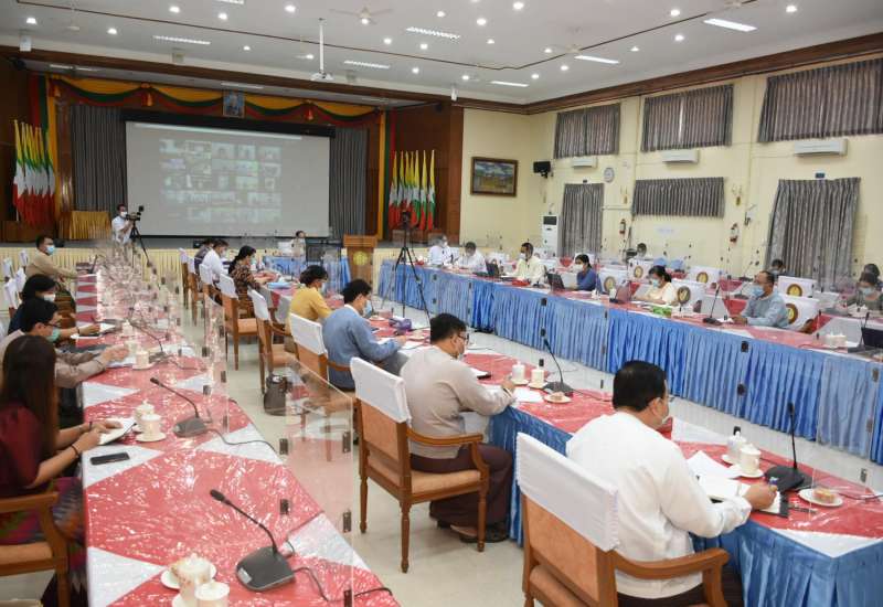 ရခိုင်ပြည်နယ်တွင်သာမက တိုင်းဒေသကြီး/ ပြည်နယ်အားလုံး၌ ကိုဗစ်-၁၉ ကာကွယ်ထိန်းချုပ်ရေး အရှိန်အဟုန်မြှင့်လုပ်ဆောင်ရန် ဗဟိုနှင့် တိုင်းဒေသကြီး/ ပြည်နယ်တာဝန်ရှိသူများ ဆွေးနွေးပွဲကို ယနေ့ နံနက် (၉) နာရီတွင် Videoconferencing စနစ်ဖြင့် နေပြည်တော်ရှိ ကျန်းမာရေးနှင့်အားကစားဝန်ကြီးဌာန မှ ပြုလုပ်သည်။