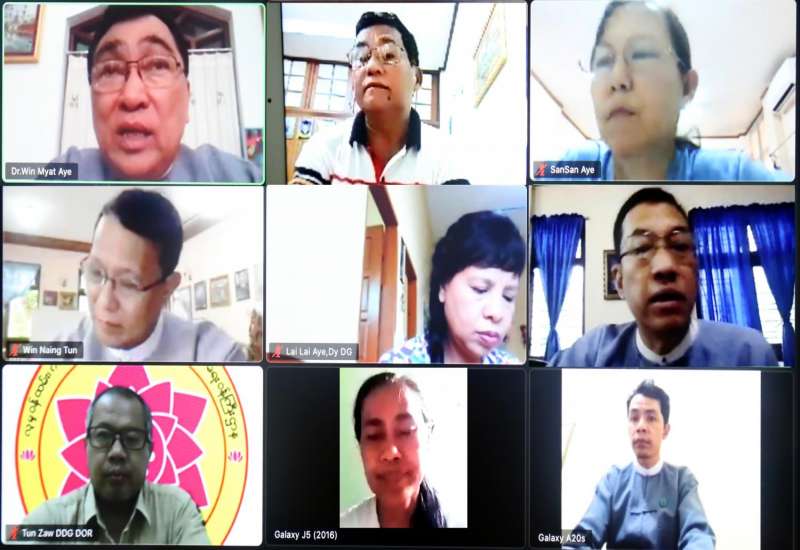 ရခိုင်ပြည်နယ်အတွင်း လူမှုဝန်ထမ်း၊ ကယ်ဆယ်ရေးနှင့် ပြန်လည်နေရာချထားရေးဝန်ကြီး ဌာနက လက်ရှိတာဝန်ယူဆောင်ရွက်နေရသော လုပ်ငန်းများကို ကိုဗစ်-၁၉ ကာလတွင် ထိ ရောက်စွာဆောင်ရွက်နိုင်ရန် ထုတ်ပြန်ထားသော စည်းကမ်းချက်များနှင့်အညီ အင်အားဖြည့် တင်းနိုင်ရေး ညှိနှိုင်းဆွေးနွေးပွဲကို ယနေ့ညနေပိုင်းက Video Conferencing ဖြင့်ကျင်းပသည်။