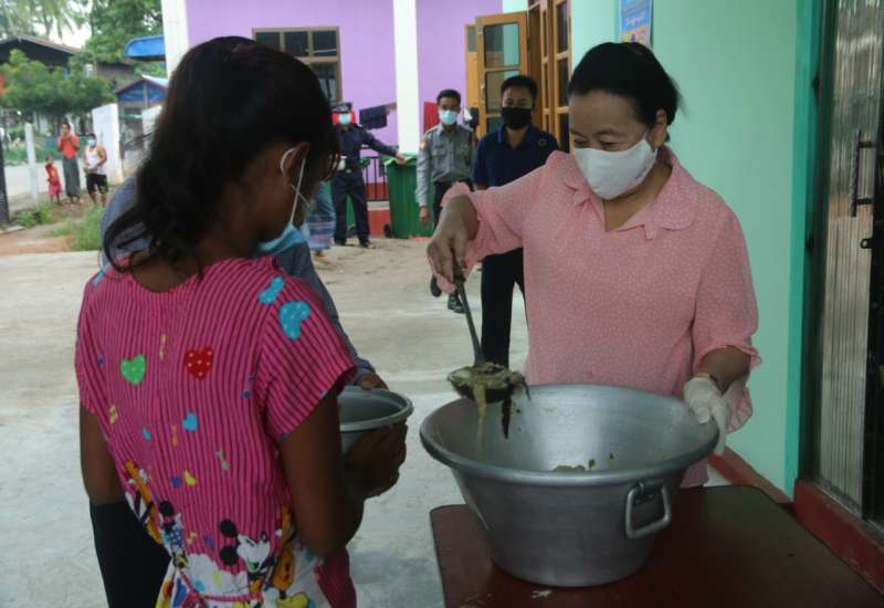သံလွင်မြစ်ရေမြှင့်တက်လာမှုကြောင့် ဘားအံမြို့ မြေပိုင်းရပ်ကွက်အချို့ရှိ လူနေအိမ်များတွင် မြစ်ရေဝင်ရောက်ပြီး ဆက်လက်နေထိုင်၍မရတော့သည့်အတွက် ရေဘေးကယ်ဆယ်ရေးစခန်း (၆) ခုဖွင့်လှစ်၍ ပြောင်းရွှေ့နေထိုင်စေခဲ့ရာ ယနေ့နံနက်ပိုင်းက ဘားအံမြို့ အမှတ်(၅)ရပ်ကွက် Cyclone Shelter ရှိ ရေဘေးရှောင်အိမ်ထောင်စုများအား ကရင်ပြည်နယ်ဝန်ကြီးချုပ် ဒေါ်နန်းခင်ထွေးမြင့်နှင့် တာဝန်ရှိသူများက အာဟာရဖြည့်စွက်နံနက်စာ ကြာဇံဟင်းခါး သွားရောက်ကျွေးမွေးခဲ့သည်။