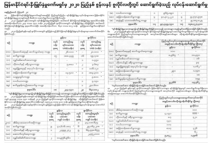 ၁။ မြန်မာနိုင်ငံရင်းနှီးမြှုပ်နှံမှုကော်မရှင်အနေဖြင့် ပြည်တွင်းပြည်ပ ရင်းနှီးမြှုပ်နှံမှု လုပ်ငန်းများအား မြန်မာနိုင်ငံ ရင်းနှီးမြှုပ်နှံမှုဥပဒေနှင့်အညီ စိစစ်ကာ ဆောင်ရွက်ပေးလျက်ရှိပါသည်။