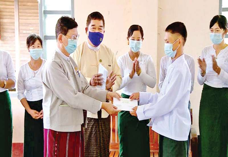 မကွေးတိုင်းဒေသကြီးအစိုးရအဖွဲ့ ဝန်ကြီးချုပ် ဒေါက်တာအောင်မိုးညိုသည် ခရိုင်နှင့် မြို့နယ် ဌာနဆိုင်ရာတာဝန်ရှိသူများ လိုက်ပါ၍ ဩဂုတ် ၁၈ ရက် ၊ နံနက် ၈ နာရီက ပွင့်ဖြူမြို့နယ် ရွာသစ်ကုန်းကျေးရွာမှ ၂၀၂၀ ခုနှစ် ၊ တက္ကသိုလ်ဝင် စာမေးပွဲတွင် (၆)ဘာသာဂုဏ်ထူးဖြင့် ထူးချွန်စွာအောင်မြင်သော ကျောင်းသူအား လာရောက်တွေ့ဆုံပြီး ဂုဏ်ပြုဆုများ ပေးအပ်ချီးမြှင့်ခဲ့ကြောင်း သိရသည်။