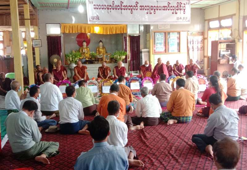 ကချင်ပြည်နယ်၊ ဗန်းမော်ခရိုင်၊ ရွှေကူမြို့၌ သာသနာ့ဗိမာန်အတွက် အလှူငွေပေးအပ်လှူဒါန်းခြင်းနှင့် ဝါဆိုသင်္ကန်း ဆက်ကပ်ခြင်း အခမ်းအနားကို ယနေ့နံနက် ၁၀ နာရီတွင် မြဝတီကျောင်းတိုက်၌ ကျင်းပပြုလုပ်ခဲ့ရာ ကချင်ပြည်နယ် အစိုးရအဖွဲ့ ဗမာတိုင်းရင်းသား လူမျိုးရေးရာဝန်ကြီးဌာန ဝန်ကြီး ဦးခင်မောင်မြင့် (ခ) ဦးဒိတ်နှင့် ရှမ်းတိုင်းရင်းသား လူမျိုးရေးရာဝန်ကြီးဌာန ဦးစိုင်းစိန်လင်းတို့ တက်ရောက်ခဲ့ကြောင်း သိရသည်။