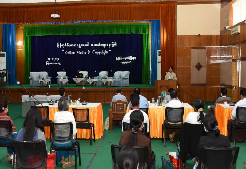 အွန်လိုင်းမီဒီယာနှင့် မူပိုင်ခွင့်ဆိုင်ရာခေါင်းစဉ်ဖြင့် မြန်မာ့မီဒီယာအရွေ့အပေါ် သုံးသပ် ဆွေးနွေးပွဲကို ယနေ့နံနက် ၁၀ နာရီတွင် နေပြည်တော်ရှိ ပြန်ကြားရေးဝန်ကြီးဌာန စုပေါင်း ခန်းမ၌ ကျင်းပသည်။