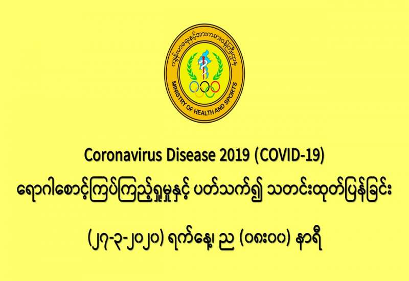 တစ်ကမ္ဘာလုံးဖြစ်ပွားနေသော COVID - 19 ရောဂါ၏ နောက်ဆက်တွဲ အကျပ်အတည်းများကို မြန်မာနိုင်ငံလည်း ရင်ဆိုင်ကြုံတွေ့နေရသည်။ရောဂါကာကွယ်၊ ကုသ၊ ထိန်းချုပ်ရေးနှင့်ပတ်သက်၍ အစောပိုင်းကတည်းက အမျိုးသား အဆင့်ဖွဲ့စည်းပြီး တက်တက်ကြွကြွ အားသွန်ခွန်စိုက် ဆောင်ရွက် လျက်ရှိသည်။ လွန်ခဲ့သောရက်က ရောဂါပိုးတွေ့သူ သုံးဦး၊ မတ်လ ၂၇ ရက်နေ့တွင် ရောဂါပိုးတွေ့သူ နှစ်ဦး၊ မတ်လ ၂၈ ရက်နံနက်က ၀၀:၁၅ နာရီ ထုတ်ပြန်ချက်ပါ ရောဂါပိုးတွေ့ရှိသူ သုံးဦး စုစုပေါင်း ရှစ်ဦးရှိပြီဖြစ်သည်။